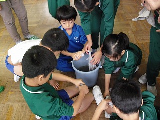 1,2年生 昔遊びで交流しました。 2019年11月28日 11時53分 [宝達志水町立押水第一小学校] 28日(木)地域のボランティアの皆さんから教室をきれいにする掃除のやり方を学びました。その後,メンコ,福笑い等の昔遊びをして楽しみました。