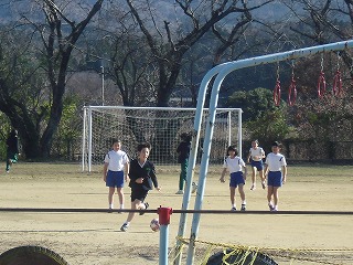 3年生 昼休みのサッカー 2019年12月16日 13時14分 [宝達志水町立押水第一小学校] 12月16日(月)初冬とは思えないくらいの好天に恵まれた今日,3年生の男女がグラウンドでサッカーをしていました。特に女子は,半袖,ハーフパンツの夏の姿です。本当に元気です。