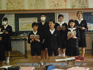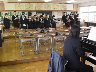 6年生 音楽 2019年12月17日 14時25分 [宝達志水町立押水第一小学校] 12月17日(火)5限6年生が,いよいよ卒業にむけて動き出しました。卒業式で歌う合唱曲を練習していました。しっかりとした音程で歌っていました。風邪が流行っているので,調子は今一つでしたが,これからの練習でとってもうまくなる予感がします。がんばって下さい。