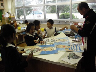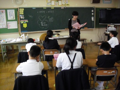 命のお話を聞いて,印象に残ったことを絵にかいています。