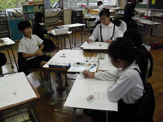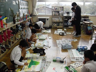 文化祭の作品を一生懸命に仕上げています。
