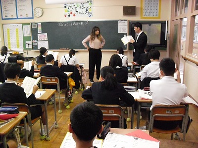 キタナ先生,亀井先生と英語の勉強をしています。