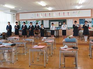 音楽集会に向けた練習は,実質今週いっぱいです。そこで,最高学年の6年生は,最後の音楽集会に向けて猛練習をしていました。曲目は,2部合唱「つばさをください」,器楽合奏「木星」,歌と踊り「パプリカ」です。まだまだ練習が必要ですが,とっても楽しそうに演奏していました。特に笑顔がよかったです。