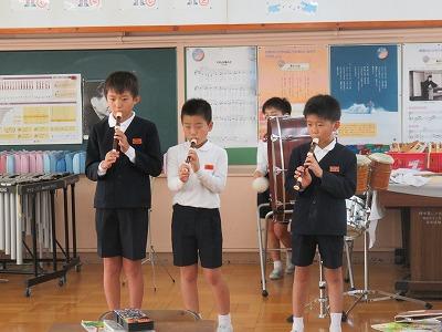 音楽集会では,プログラムの最初に演奏します。とっても元気よく演奏していました。