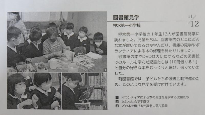 1年生が町の図書館の見学に行きました。町の図書館での本の借り方や蔵書の種類などについて教えてもらいました。
