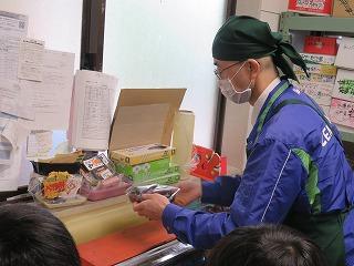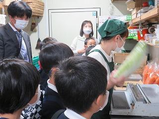 お店の裏側や商品が並べられているところを見せていただいたり,店長さんから説明を聞きたりしながら