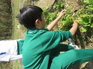 今日は,2年生が畑の収穫を行いました。雪が降り前に植えた大根とブロッコリーが大きくなったので