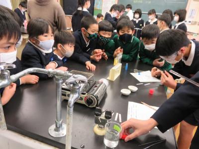6年生の理科の授業を後輩たちがたくさん見に来ました。6年生は,先生の指示がなくても,自分たちで相談しながら授業を進めていきます。