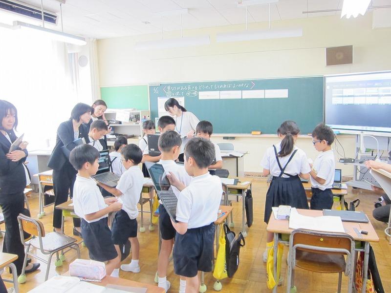 仲島教諭はICTを活用しつつ、子どもたち一人一人の思考の過程を見取り、子どもが適切に問題解決していけるように、個に応じて、よい考えの児童を紹介したり、ヒントとなる声かけをしたりしていきました。