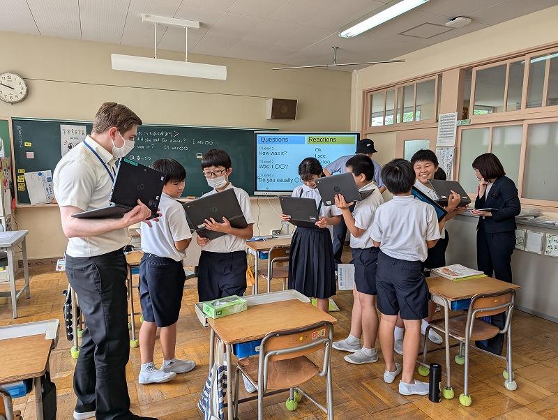 7月1日、石田先生が研究授業を行いました。6年外国語「My Weekend」の授業です。