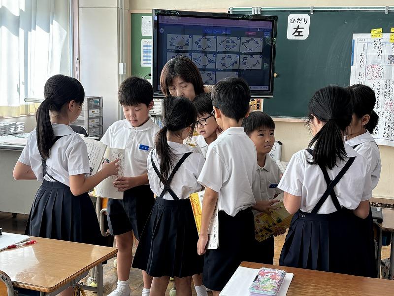また、自分の考えをブロック操作や図を示しながらお互いに説明させ、問題解決の過程を友達と共有することができるようにしていました。