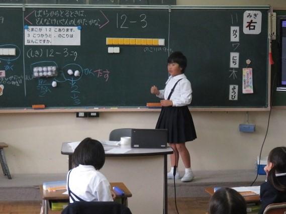 11月7日に弘灰先生が研究授業を行いました。1年算数「ひきざん」の授業です。