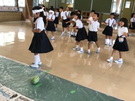チームで協力!スイカ割り!(低学年登校日)