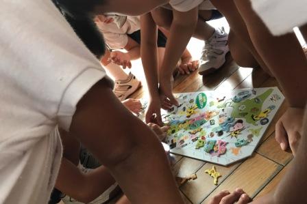 暗記でなく,五感を使って楽しんで知識が身に付くようにします。