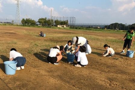 で,草が茂った運動場周辺や学級園,駐車場の周りがきれいになり