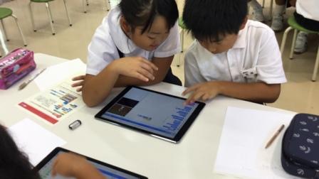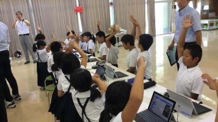 全校登校日のこの日,ランチルームでプログラミング体験をしました。