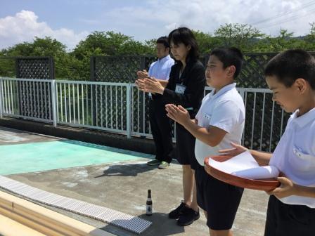 そして体育委員で,水泳の上達と安全を願い,行いました。