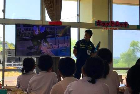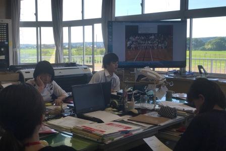 昼休みには,その様子をモニターで全校に紹介しました。