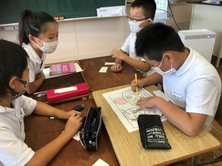 5年生は,決められた「ルール」をグループで守りながら,ヒントカード