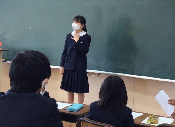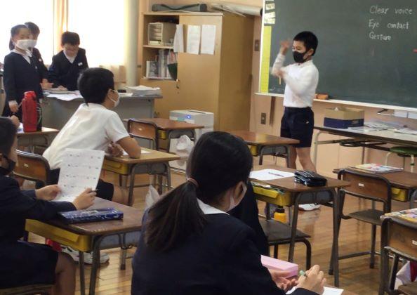 中学生は,授業や部活動,行事,テストなどに関して,All Englishでプレゼン。