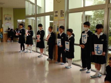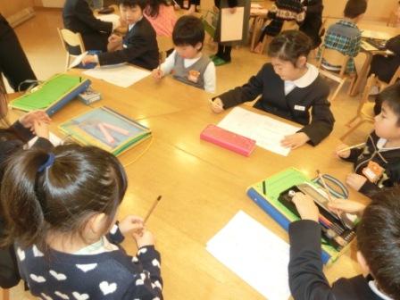 1年生は邑知保育園に行きました。年長さんに,鉛筆の持ち方や立ち方,返事の仕方などを教えました。これを機会に,1年生自身も,いろいろな約束事がしっかりできるようになって「かっこいい2年生」になってほしいと思います。