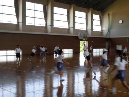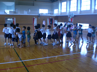 晴れたら、プール遊びの予定でしたが、天気がよくなく、体育館での活動となりました。