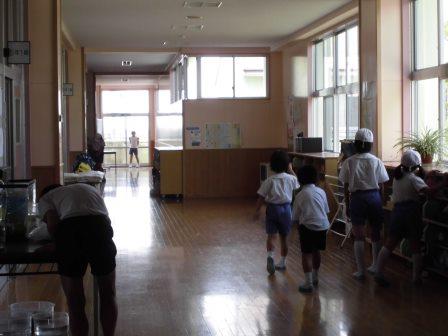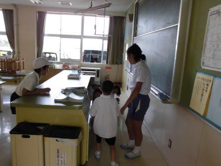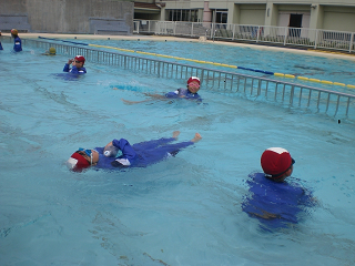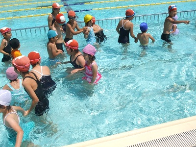 2015年7月2日 18時48分 本校の5年生と邑知保育園のぞう組さんとの交流会が行われました。今回はプールに入り,じゃんけん列車や宝石探し,フラフープくぐり等,楽しく活動することができました。