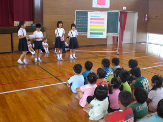 邑知保育園の年長児ぞうぐみさんと2年生で交流会を開きました。