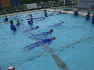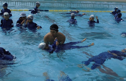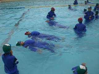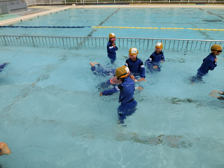 その後、着衣水泳を行いました。水の事故はあってほしくないことですが、そういった場面を想定した練習を行いました。