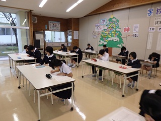 4~6年生がジュニア邑知検定に挑戦しました。「邑知博士になるぞ!」と意気込む児童も見られ,みな勉強の成果を発揮していました。たくさんの邑知博士が誕生してほしいと思います。