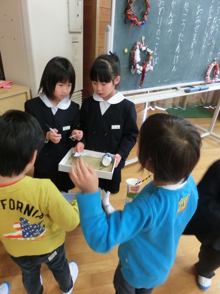 のびのびになっていた邑知保育園との交流会を行いました。前回は,中止となりテンションが下がっていた子どもたちでしたが,その分今回とても張り切りました。
