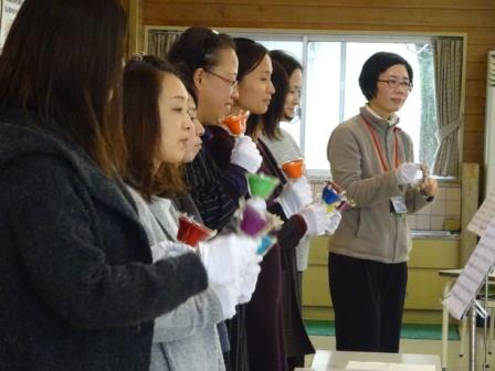 ボランティアの合間に,たくさんのハンドベル練習を重ねてこられました。