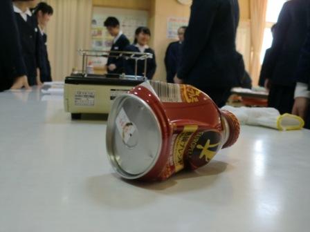 実験では,ガスコンロで空き缶の中の水を蒸発させてから,