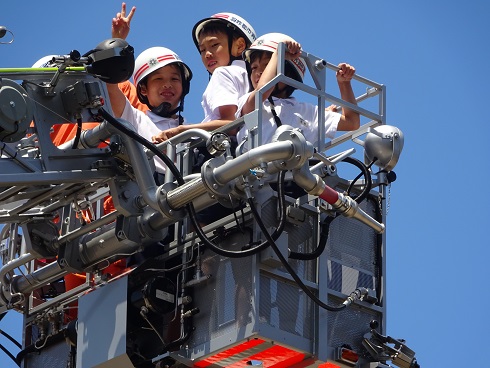 各種消防車や救急車の設備を説明していただいたり,通信指令室で,