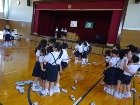 児童会からは,仲良しプログラムとして「握手新聞のりゲーム」