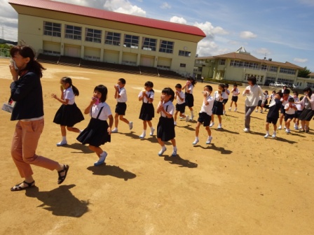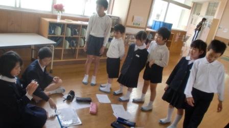 と提案がありました。列を整えて運動場を歩く班が多かったようです。