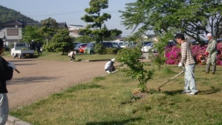 運動場や周辺の草かりや石拾いなどしてくださいました。