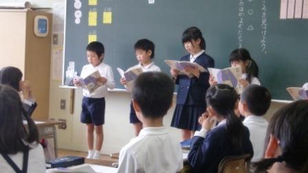 今日の長休みに、図書ボランティアの方の読み聞かせがありました。