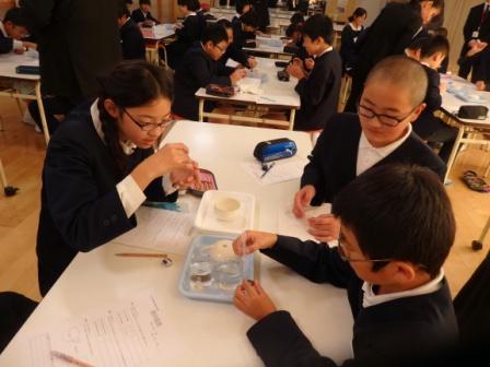 邑知小学校の6年生も余喜小学校の6年生も最初はとても緊張していましたが,自己紹介や実験を通して自然と話し合う姿が見られ,1回目の交流とは思えないようなものでした。