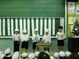 1年生は「ありがとう、あさがおさん」、2年生は「スイミー」、3年生は「わたしたちの楽しい学校生活」、4年生は「水の旅」、5年生は「邑知をつくるわたしたち」、6年生は「The Wolf and the Seven Little Goats」(おおかみと七ひきのこやぎ)という演目を行いました。