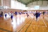 赤、青、黄、緑4つの縦割り班対抗で、個人の短縄跳びと班ごとの8の字跳びが行われました。