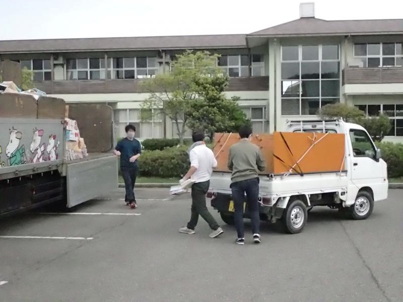 たくさんの保護者のみなさまのご協力により,多くの古紙や段ボールなどが運び込まれました。