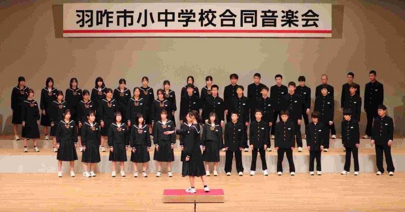 コスモアイル羽咋で令和7年度羽咋市小中学校合同音楽会が開催され、今年度は本校より、1.2年生が参加しました。
