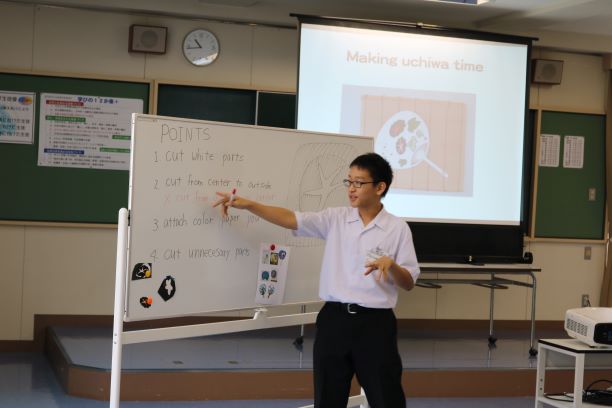 当日、生徒は可能な限り英語を使って留学生に説明しており、身振り手振りを交えながらも様々な場面で生徒と留学生の楽しそうな笑い声が聞こえていました。生徒にとっては英語が世界の共通語であることや英語を使うことで世界中の人々と親しくなれることをまさに体験できた時間でした。