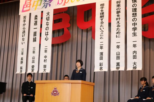 その後のスピーチコンテストでは各学年から選抜された代表者6名が日頃の中学校生活を振り返り、これからに向けて前向きに成長していこうという発表を堂々と行いました。
