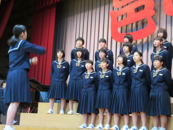そして合唱コンクールでは3年生は最後の年にかける熱い思いを美しいハーモニーで表現してくれました。2年生は「ふるさと」をアカペラで歌い、練習の成果を披露しました。1年生は緊張も見せず、軽快な曲にのせ、元気な歌声を聞かせてくれました。
