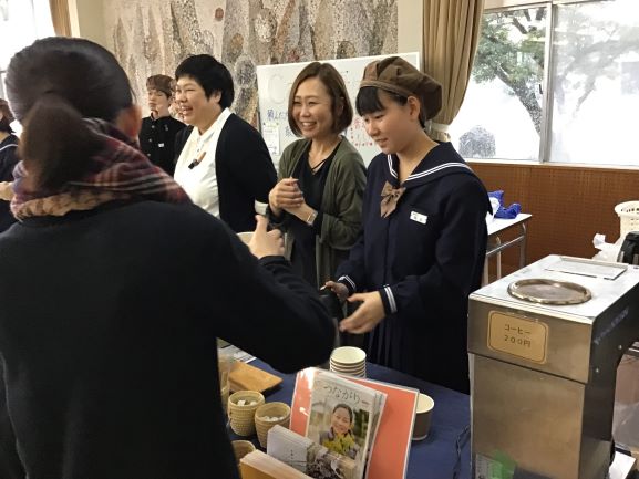 午前の活動のあとの昼食・委員会コーナーでは、今年初めて地元でカフェを営業している「るるるん・ち」さんのご協力で邑中生も参加しながらケーキやコーヒーの販売を行うことができました。