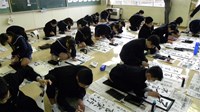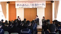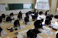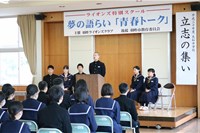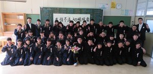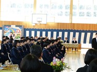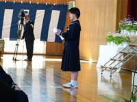 たくさんのご来賓をお迎えし、厳粛な雰囲気の中で始まった式でしたが、卒業生たちは、たくさんのお祝いの言葉や励ましのメッセージに、歩んできた3年間を思い返し、またこれからに思いを馳せながら感慨深い様子で聞き入っていました。その後、在校生代表多田千紘さんの送辞では、これまで導いてもらった先輩方への感謝の気持ちと先輩の思いを受け継ぎ、邑知中学校を盛り上げていこうという意気込みが伝えられました。そして、卒業生代表杉浦正汰さんの答辞では、1年生当時、二つの学級で始まった中学生活が2年生では一つの学級となり、それぞれの個性を受け止めながら共に成長してきたことが語られました。式の最後は、卒業生の歌「ありがとう」「仰げば尊し」、在校生の歌「思い出は空に」そして最後に会場全体で校歌を合唱し、式を閉じました。