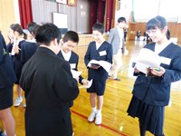 本校では人権作文への出品は毎年行っていて、今年は3年生の安藤正景さんと中越優里さんが優秀作品に選ばれました。12月4日には市役所で市内中学生の表彰式が行われ、引き続き5日の日に、本校で法務省金沢地方法務局七尾支局長より直々に感謝状が贈られました。