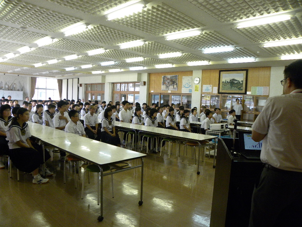 講演後の質疑の時間には、生徒から夜間の水分補給の方法や、スポーツドリンクの効果的な飲み方などについて質問が出され、熱中症についてさらに詳しく理解することができました。このあと暑い日が続き、部活動はもとより日常生活でも熱中症の危険を回避し、安全で健康な夏休みが過ごせるよう、教えていただいたことを生かしてほしいと思います。